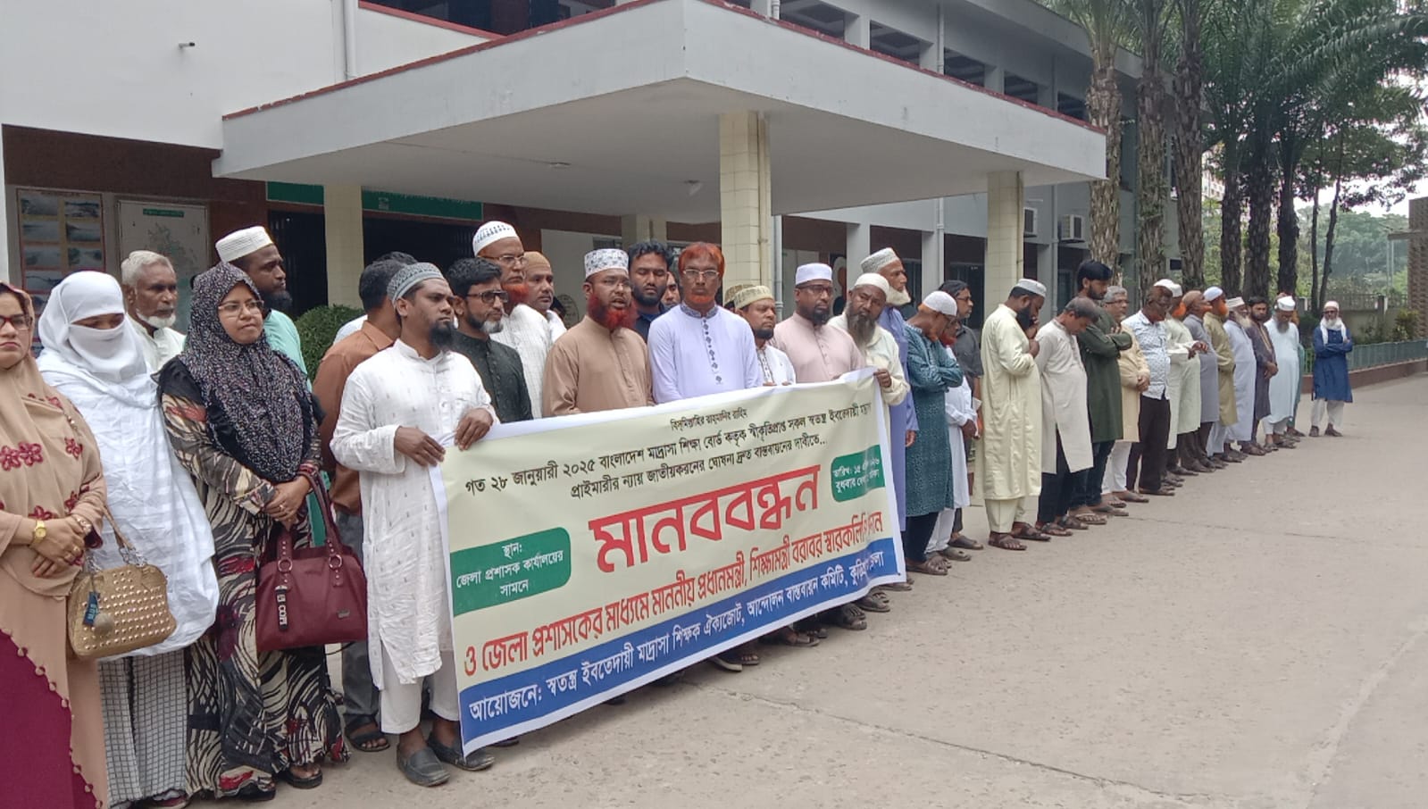 স্বতন্ত্র ইবতেদায়ী মাদরাসা শিক্ষক ঐক্যজোটের (আন্দোলন বাস্তবায়ন কমিটি) কুড়িগ্রাম জেলা শাখার সভাপতি মোঃ আব্দুর রশিদ এর সভাপতিত্বে এ মানববন্ধন অনুষ্ঠিত হয়।