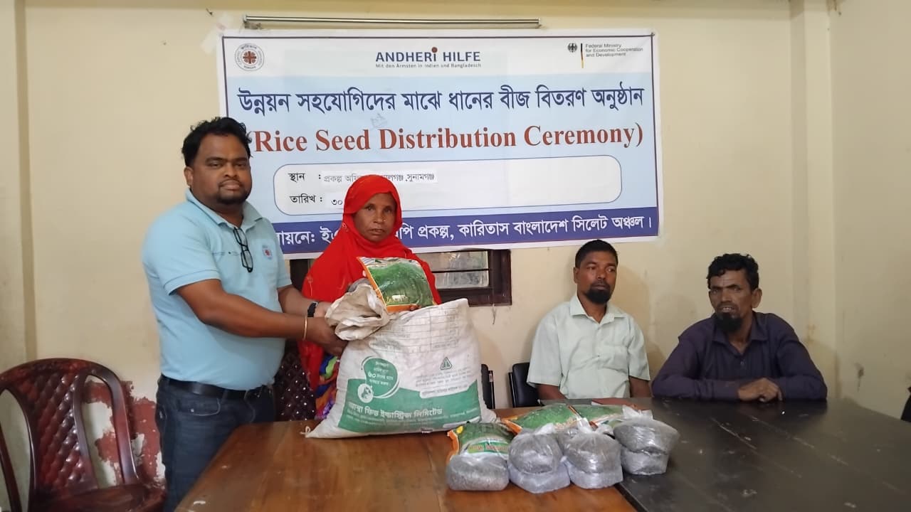 কারিতাস বাংলাদেশ এর ELSRP প্রকল্পের উদ্যোগে জামালগঞ্জ উপজেলার প্রকল্প অফিসে উন্নয়ন সহযোগিদের মাঝে কৃষি সহায়তা উপকরণ বিতরণ করা হয়েছে।