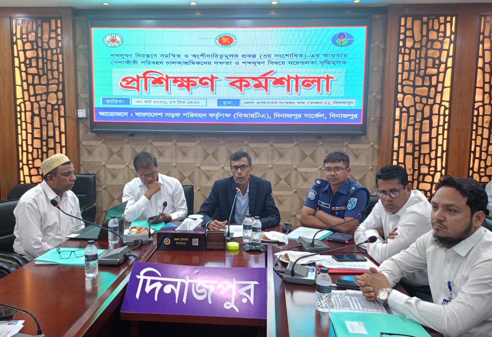 ৩১শে মার্চ-২০২৬ মঙ্গলবার দিনাজপুর জেলা প্রশাসকের সম্মেলন কক্ষে বাংলাদেশ সড়ক পরিবহন কর্তৃপক্ষ (বিআরটিএ) দিনাজপুর সার্কেল এর আয়োজনে শব্দদূষণ নিয়ন্ত্রণে সমন্বিত ও অংশীদারিত্বমূলক প্রকল্প (৩য় সংশোধিত)-এর আওতায় পেশাজীবী পরিবহন চালক/শ্রমিকদের দক্ষতা ও শব্দদূষণ বিষয়ে সচেতনতা বৃদ্ধিমূলক দিনব্যাপী প্রশিক্ষণ কর্মশালা অনুষ্ঠিত হয়েছে।